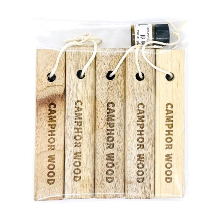 人気の天然樟脳10包に樟脳を入れてクロゼットなどに吊るせる巾着、樟脳の原材料のクスノキのブロック、カンファーエッセンシャルオイルのコンプリートセット!