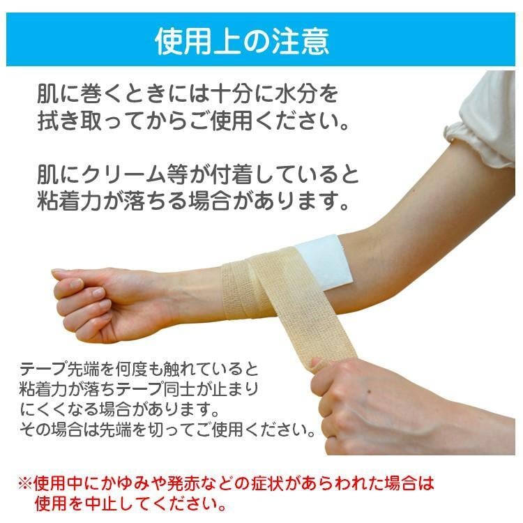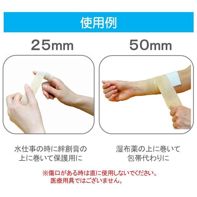 ●包帯同士が付く自着性包帯なので包帯止めが不要。 ●ハサミ要らずで手で簡単に切れます。