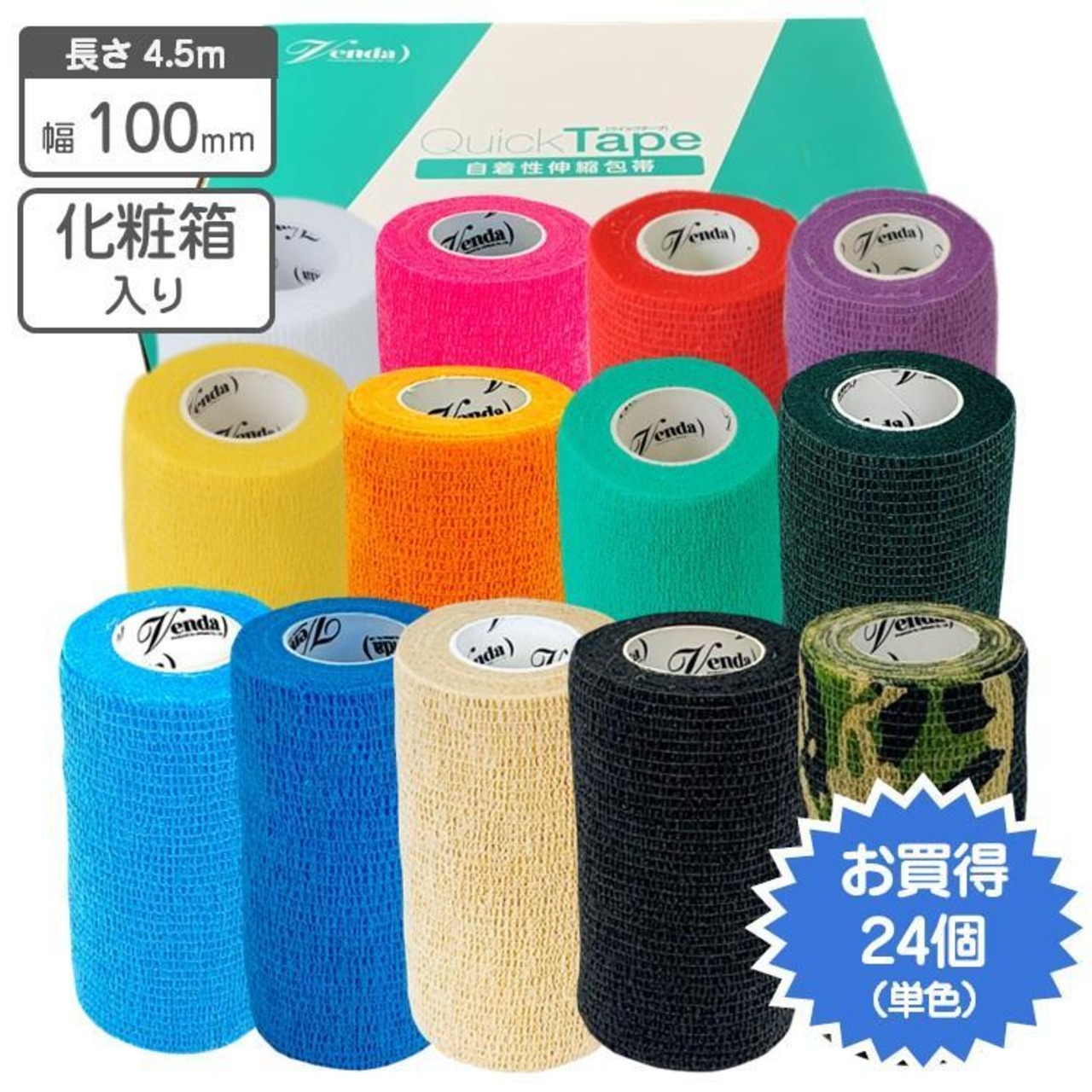 自着性 伸縮包帯 クイックテープ 100mm×4.5m 1箱 24個入り