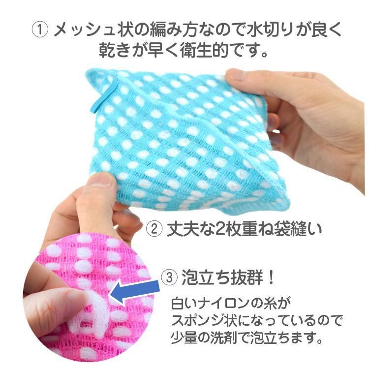 ●スポンジ状のナイロン糸を使用しているので、少量の洗剤で泡立ちします。