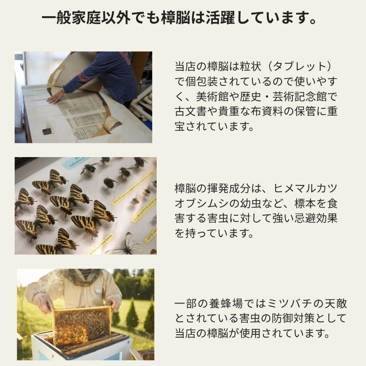 ●不織布で包んだタブレット(粒状)の樟脳は当社オリジナル。