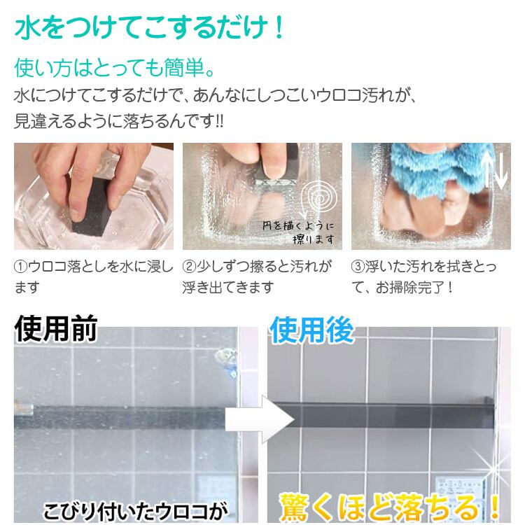 ●洗剤などではなかなか落とせない、鏡・ガラスのウロコ汚れを落とします。