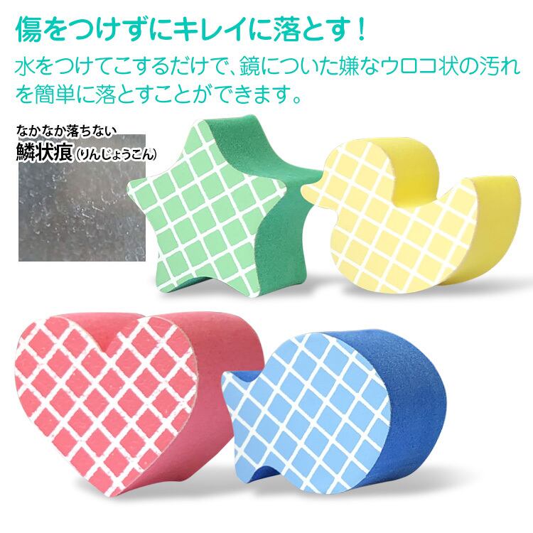 ●業務用のウロコ落しを、可愛い4色のNEWカラーに加工し、4タイプのキャラクターにカットしました。浴室や洗面所に置くのにぴったな、かわいいウロコ落しです。