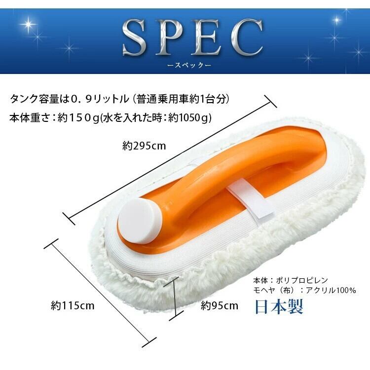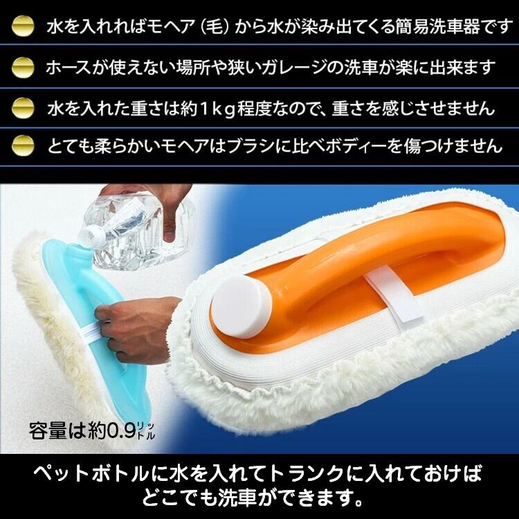 ■本体に水を入れると底面のモヘヤ(布)から水がでてくるので、ホースがなくても車の洗車が楽に出来ます。