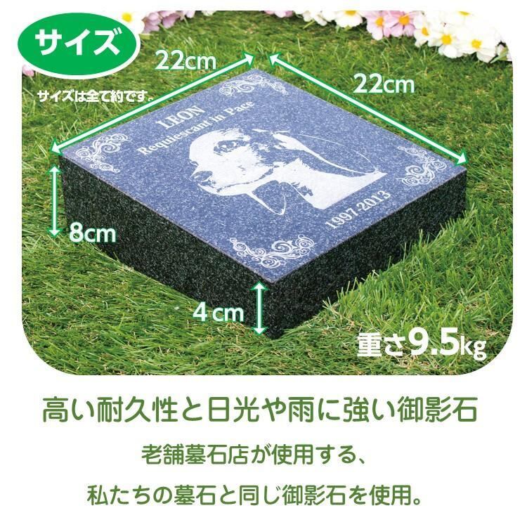 ペットの本格的なお墓、在りし日の面影を 御影石に彫刻するメモリアルストーン。