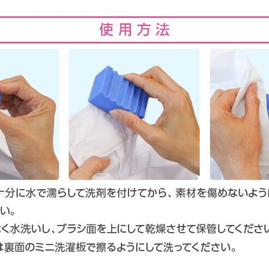 ■頑固なシミは裏面のミニ洗濯板で擦るようにして洗ってください。