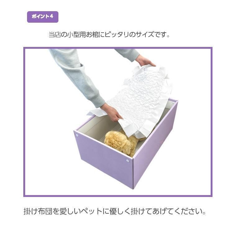 ダンボール製ペットのお棺「紫苑」小型犬用・子犬猫用に対応している火葬用布団です。