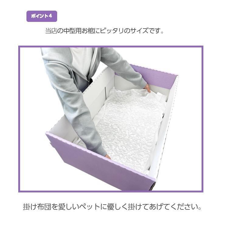 当店オリジナルのダンボール製ペットのお棺・中型犬用に対応している火葬用布団です。