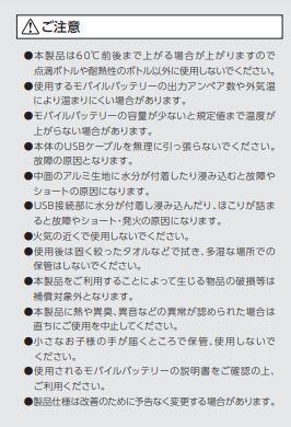 ・モバイルバッテリーの出力アンペア数や外気温により温まりにくい場合があります。