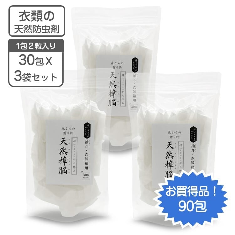 天然樟脳 防虫剤 衣類防虫 和服防虫 タンス クローゼット 清涼感 衣替え 大容量 90包(1包2個入)