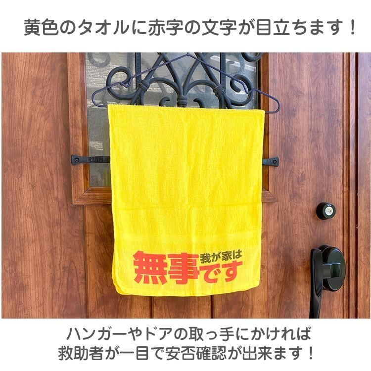 この1本の黄色いタオルをドアや門に巻くだけで災害時に救助者が一目で安否確認ができ、救助活動にとって大きな役割を果たします。
