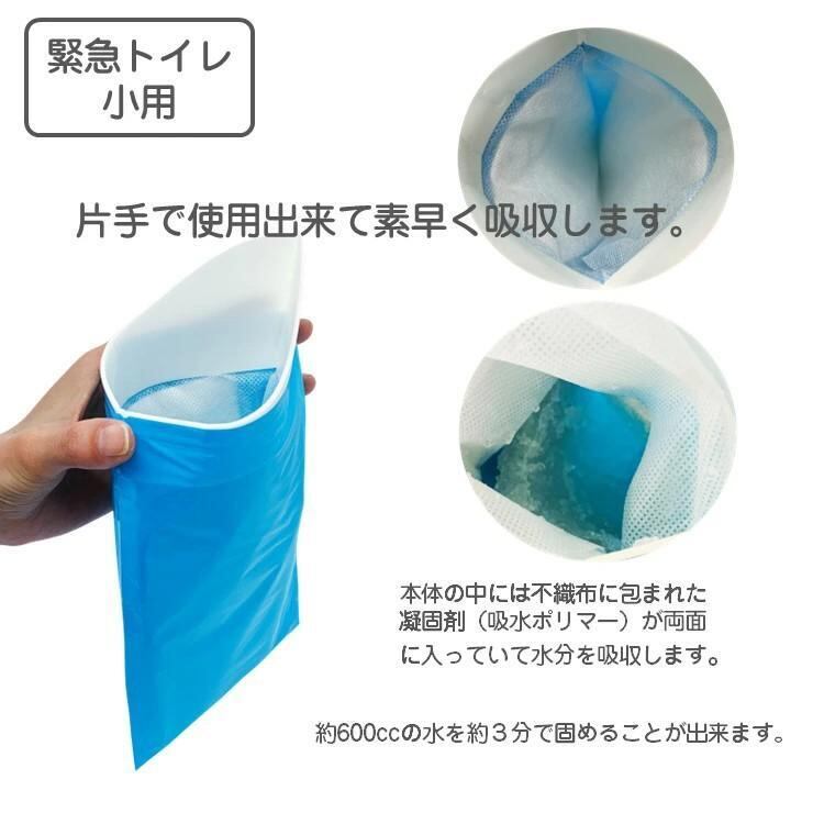 材質:ポリエチレン(袋)、吸水ポリマー(凝固剤)