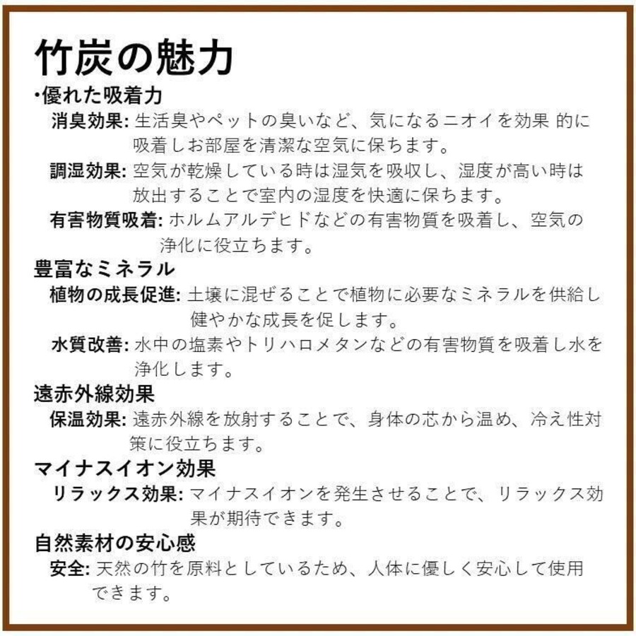 □本品の竹炭は割れた状態ですので鋭角な箇所がある場合がございますのでご注意ください。